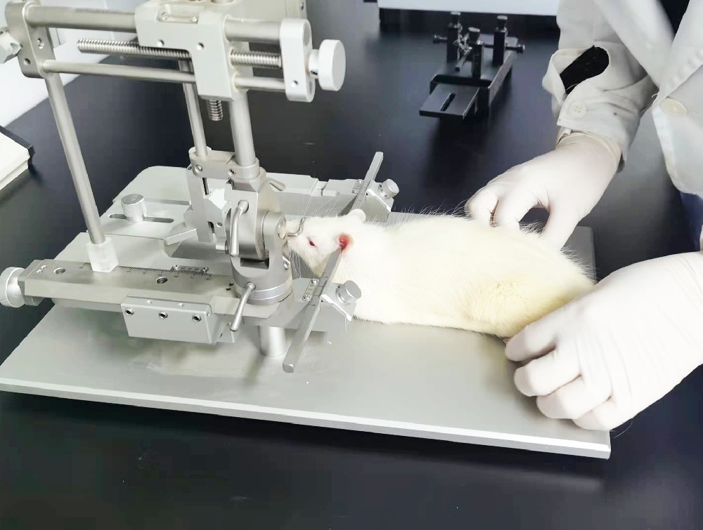 1.大鼠常规麻醉,然后固定在立体定位仪上。